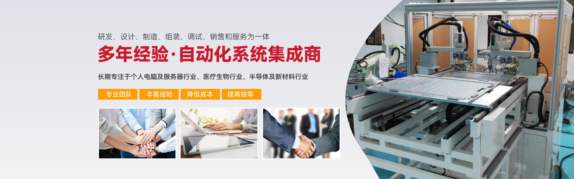 ※ 長期專注亍個人電腦及服務器行業、醫療生物行業、半導體及新材料行業三大行業的自動化組裝、檢測設備的生產與開發。